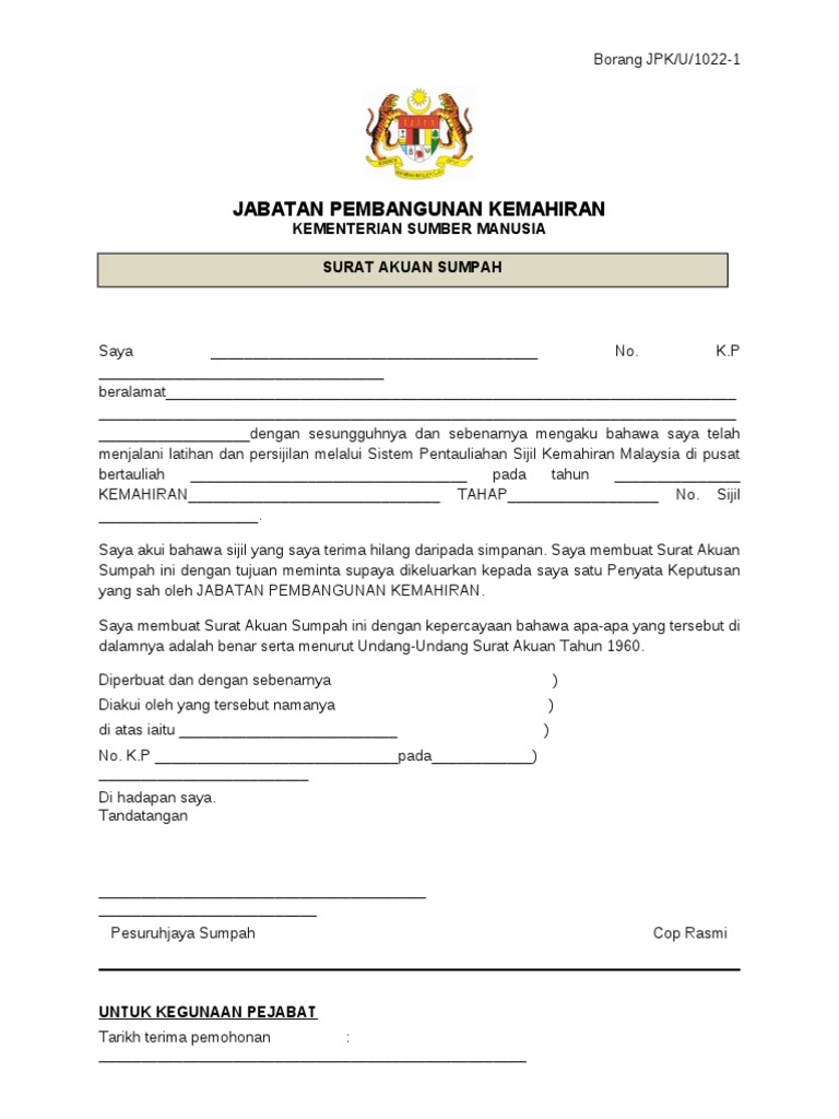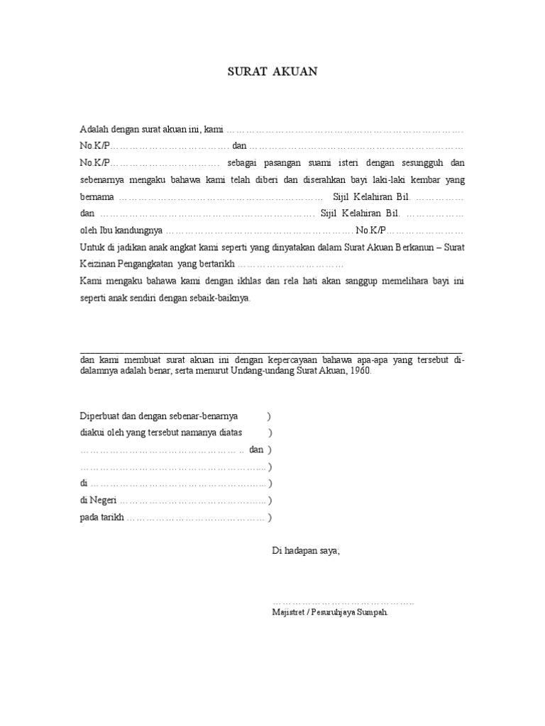 Pjs tidak dibenarkan sama sekali menjalankan khidmat di luar premis atau pejabatnya atau. Lantas, bagaimana dengan pph 21 pegawai tidak tetap? Anda juga boleh menyediakan surat akuan sendiri dengan memastikan arahan tersebut dipatuhi. Contoh surat akuan sumpah penjagaan. Tujuan surat akuan pengenalan adalah satu dokumen perjalanan yang dikeluarkan kepada penduduk tetap malaysia yang tidak mempunyai taraf a. By kewaja in types > research > law. Bagi anak angkat perlu disertakan bersama dengan surat pengangkatan jabatan pendaftaran negara atau sertakan bersama akuan sumpah penjagaan. Aku tidak tahan kalau main di bus sembunyi sembunyi. Surat akuan sumpah hak jagaan anak. Ibu bapa kandung tidak akan menuntut balik. Contoh surat akuan sumpah pendapatan adalah seperti di bawah : Permensos adopsi 2009 via www.slideshare.net. Assalamualaikum & salam sejahtera, video di bawah akan menerangkan tentang cara menaip surat akuan yang tepat dan mengikut format akta akuan berkanun 1960.
