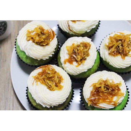 Forget about your pandan essence, food colorings and use the most natural ingredients to make a pure pandan cake. Simmer this for about 10 pipe the cream on the cupcakes. These dainty pots of flowers contain a delectable hidden treasure inside! Pandan base cupcake injected with palm sugar and topped with cream cheese. Top with a sprinkling of shredded coconut.